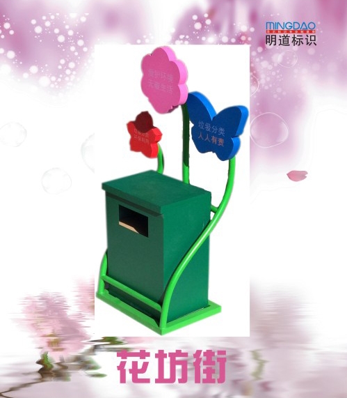 明道標識設計的花園坊社區(qū)商業(yè)街標識系統(tǒng)主要包括:主題招牌,精神堡壘,多向指示牌,環(huán)衛(wèi)垃圾箱等。
