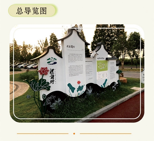 特色田園鄉(xiāng)村標(biāo)識(shí)牌以該村“白墻黛瓦”的生態(tài)底色為藍(lán)本,將田園鄉(xiāng)村寧?kù)o致遠(yuǎn)的生活狀態(tài)為創(chuàng)作內(nèi)涵,讓這套
