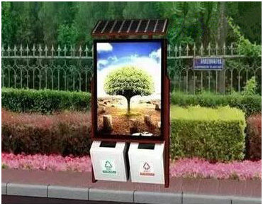 分可回收和不可回收兩個(gè)箱桶。箱體上部為led顯示屏,并配有太陽(yáng)能供電系統(tǒng),可刊登城市最新廣告信息。箱體還配有驅(qū)蚊驅(qū)蠅、語(yǔ)音播報(bào)、