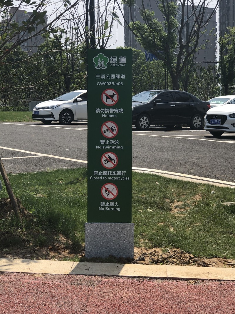 1 出入口標牌:通常在公園出入口處安裝。公園出入口人流量最大,在出入口安裝的標牌不但要標明出入口位置,同時要能展示該公園的風格特點,讓市民能從直觀上感受到公園的特色特點。