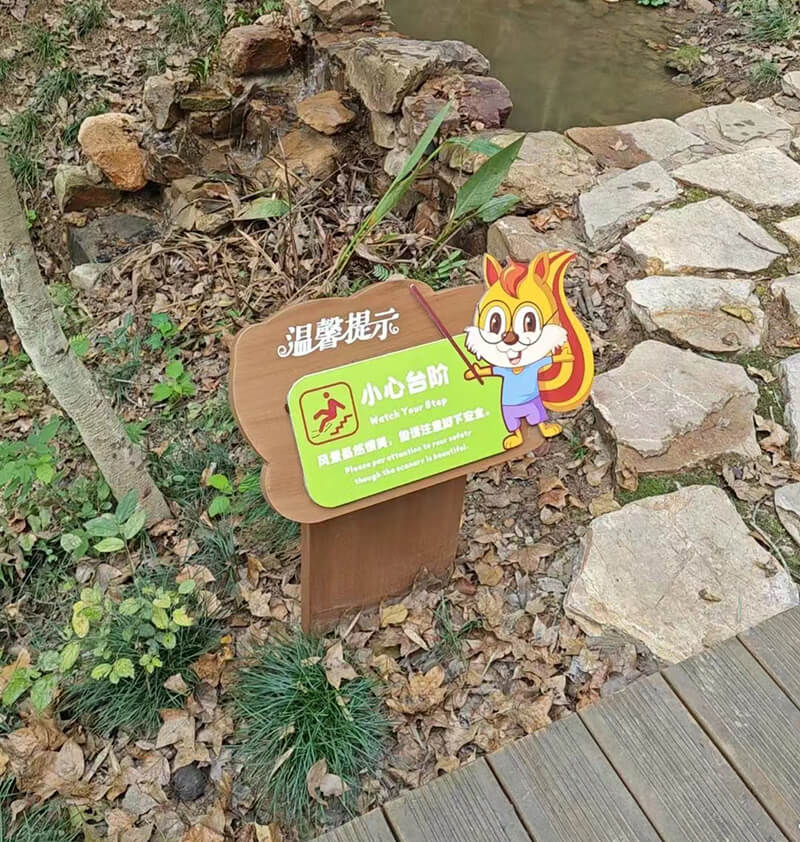 在旅游景區(qū)內有可能出現(xiàn)風險和安全風險的地區(qū),或是提示游客需注意的地區(qū),設置該類標識標牌。此類征兆可分成提示性標識牌和警告性標識牌。