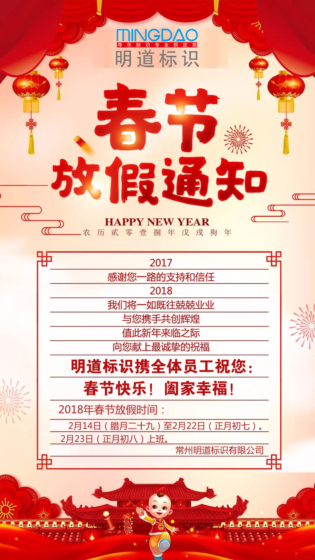 2018春節(jié)放假通知