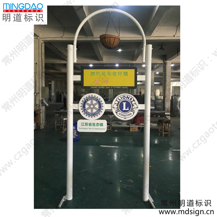 標(biāo)識(shí)牌介紹:這款造型廣告牌是泗陽(yáng)縣張家圩鎮(zhèn)村委托常州明道標(biāo)識(shí)制作的生態(tài)鎮(zhèn)標(biāo)識(shí)牌系列中的一款。小鎮(zhèn)形象標(biāo)識(shí)整體造型體現(xiàn)了園藝風(fēng)格的小鎮(zhèn)特色,式樣簡(jiǎn)單大方,別具一格。標(biāo)識(shí)牌頂部獨(dú)有的花籃設(shè)計(jì)是整個(gè)標(biāo)識(shí)的點(diǎn)睛之筆,突出了特色小鎮(zhèn)的生態(tài)主題,同時(shí)讓整個(gè)標(biāo)識(shí)煥發(fā)生機(jī),花籃內(nèi)可定期更換鮮花或者布藝絹花。