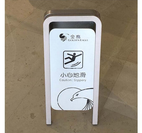 明道標識:不銹鋼A字警示牌_小心地滑警示牌_不銹鋼提示牌成品展示